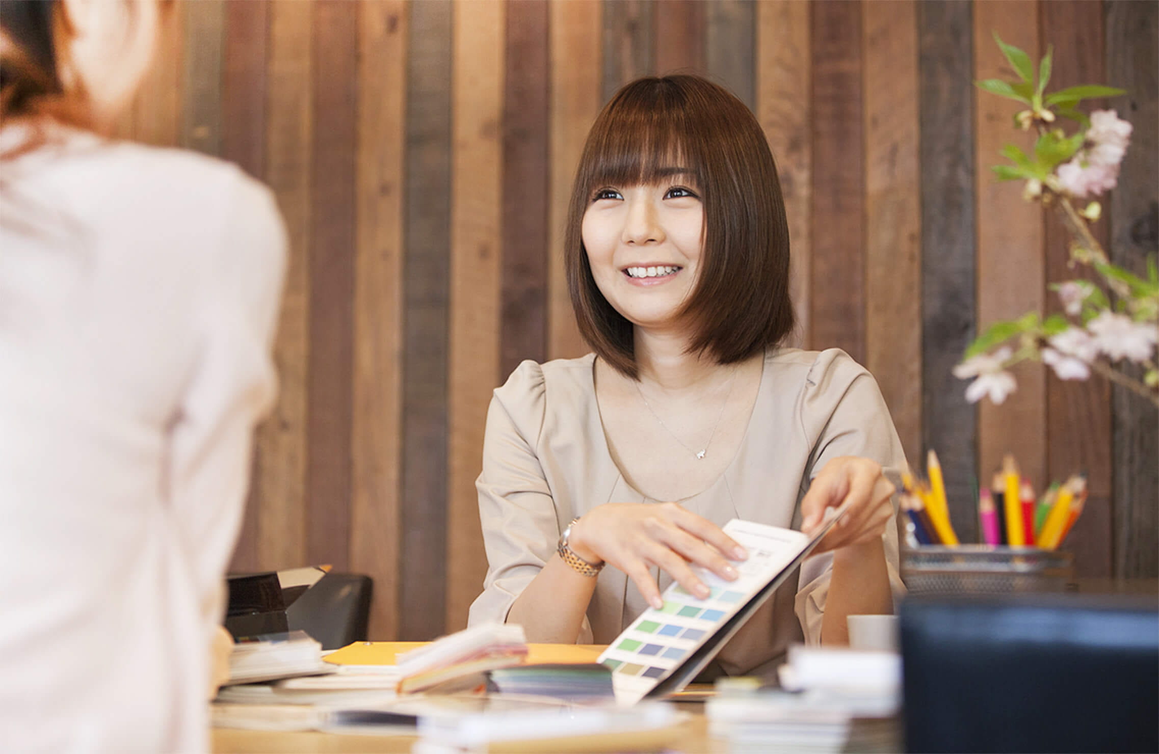 を解決し見える形にクライアントごとに編成されたチームのディレクターであり、工事や制作の手配から発注・見積もり、現場監督まで全てを専属で担当。お客様と同じ目線に立ち、考え、課題を解決します。